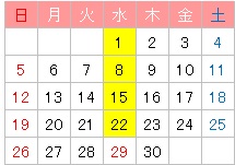 ※11日(水):休講日