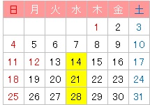 ※31日(水):休講日