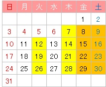 ※3日(土):休講日