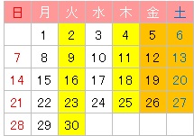 ※2日(土):休講日