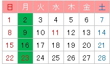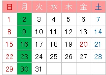 ※29日(月):休講日