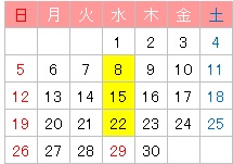 ※29日(水):休講日
