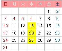 ※6日(水):休講日